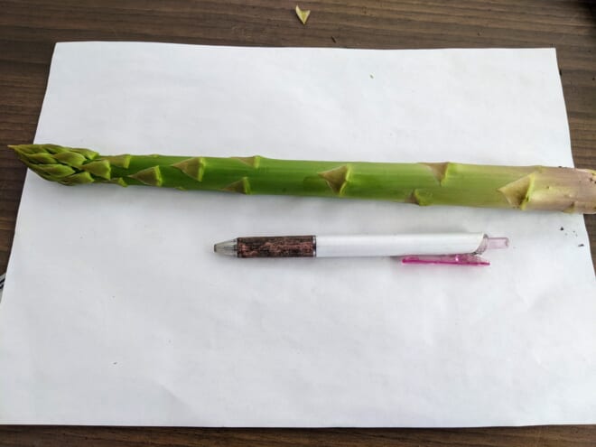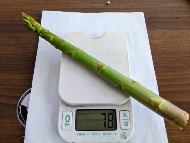 超でかサイズのアスパラガス 2025.03.22 BLOGNEWS 当園自慢の超でかサイズのアスパラガスこと オリジナルブランドの【BIGBOSS】。 1本の長さ27cm重さ50g以上です 1日を通して採れる本数はわずか10本程度、西尾の憩いの農園ファーマーズマーケットのみ出荷しております。日によっては収穫できない事もありますm(_ _)m 興味ある方は朝イチにお出かけくださいね 太いアスパラガスは柔らかく食べ応え抜群です 関連情報 超でかサイズのアスパラガス コメントは受け付けていません。